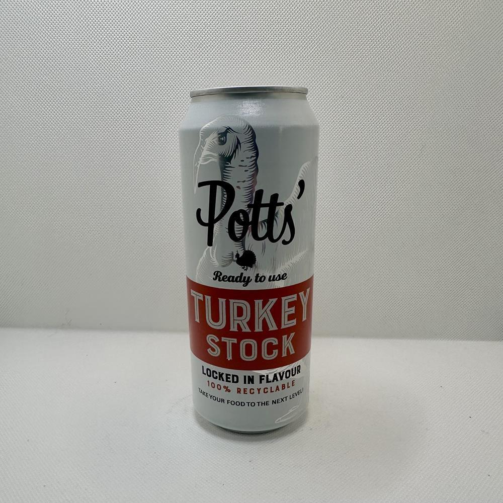 Potts turkey stock in a can 500ml. Perfect as a base for turkey gravy or delicoius in stews, soups and sauces.